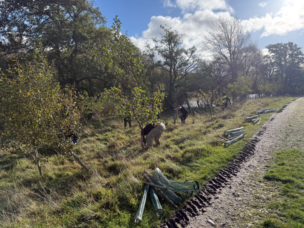 Over 20 volunteers took part across the two days, working tirelessly to remove hundreds of tree tubes from young riverside trees planted around five to seven years ago as part of our Revitalising the River Spey at Kinchurdy Farm project.